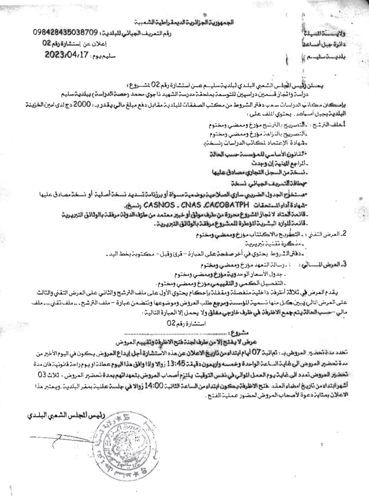 استشارة لمشروع: دراسة وانجاز قسمين دراسيين للتوسعة بملحقة مدرسة الشهيد ناجوي محمد19 أبريل، 20230 17 شاركها فيسبوك X مشاركة عبر البريد طباعة