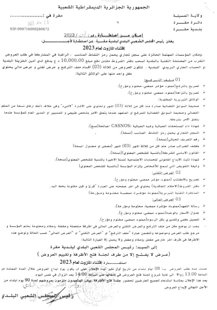 استشارة لأجل: اقتناء المازوت لعام 2023