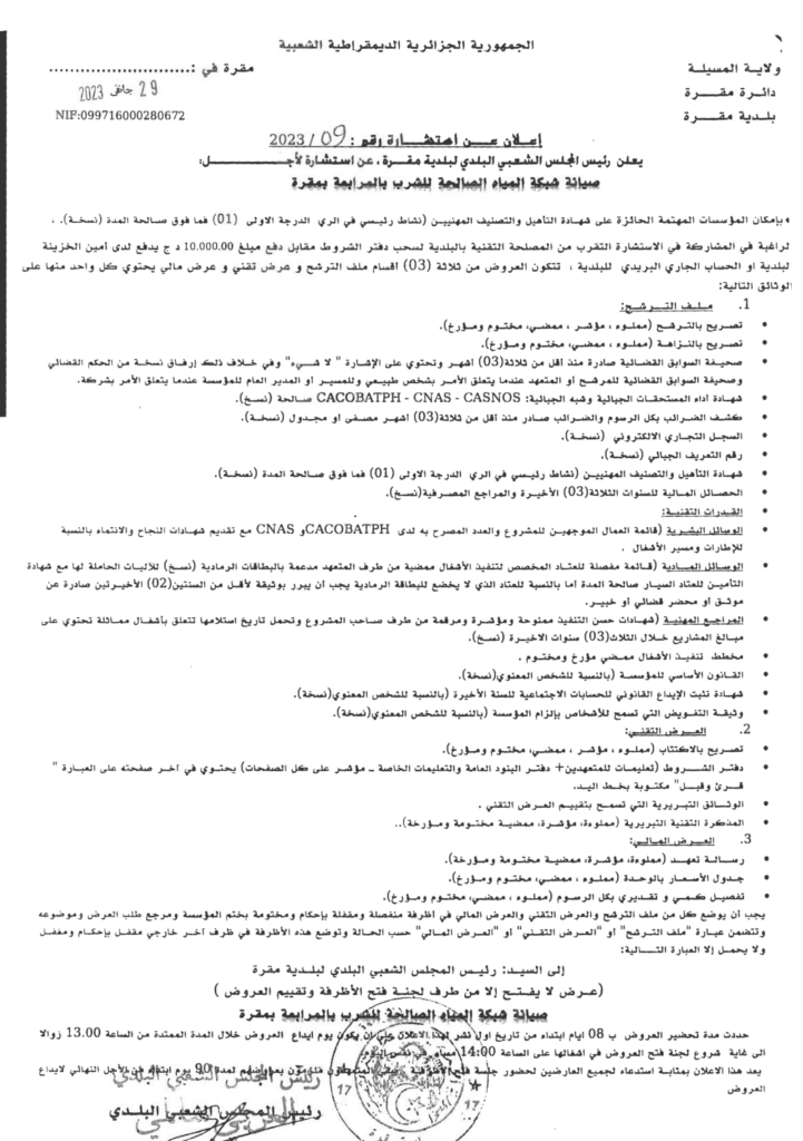 استشارة من أجل: صيانة شبكة المياه الصالحة للشرب بالمرابعة1 فبراير، 20230 19 شاركها فيسبوك X مشاركة عبر البريد طباعة