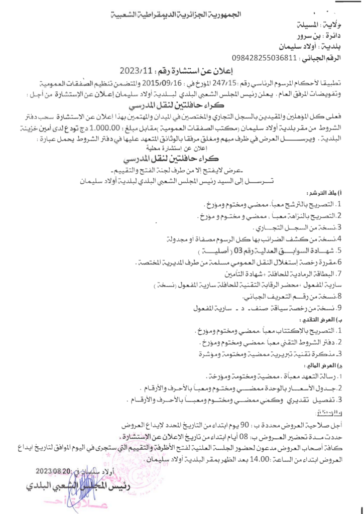 استشارة من أجل: كراء حافلتين لنقل المدرسي
