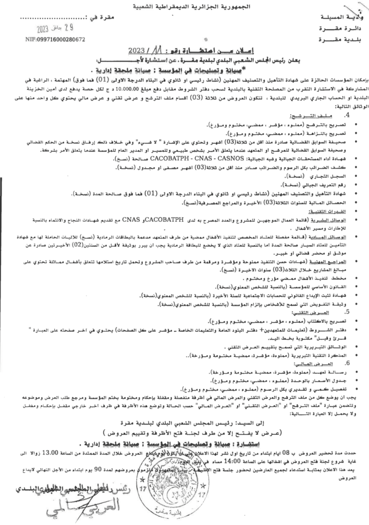 استشارة لأجل: صيانة وتصليحات في المؤسسة -صيانة ملحقة إدارية-1 فبراير، 20230 15 شاركها فيسبوك X مشاركة عبر البريد طباعة
