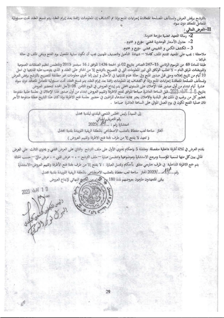 إعلان عن استشارة 2023/14 لمشروع انجاز ساحة لعب مغطاة بالعشب الاصطناعي بالمنطقة الريفية اللوبيدة بلدية امجدل
