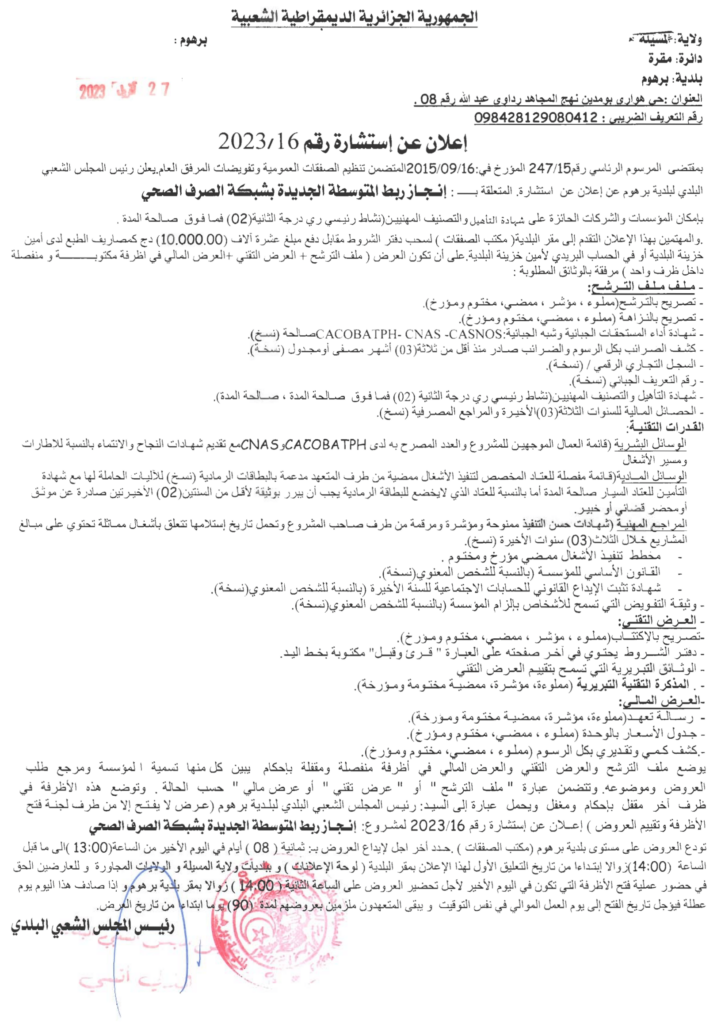 إعلان عن استشارة 2023/16 بلدية برهوم
