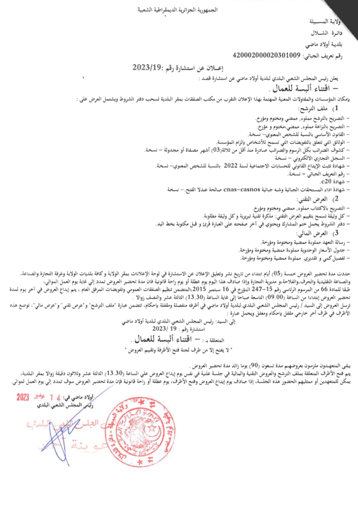 استشارة من أجل: اقتناء ألبسة للعمال