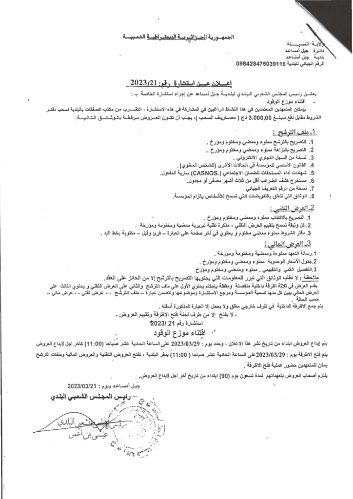 استشارة خاصة بـ : اقتناء موزع الوقود