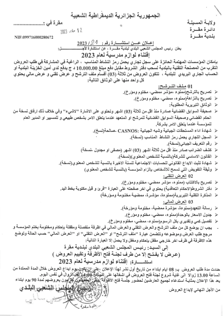 استشارة لأجل: إقتناء لوازم مدرسية بعام 2023