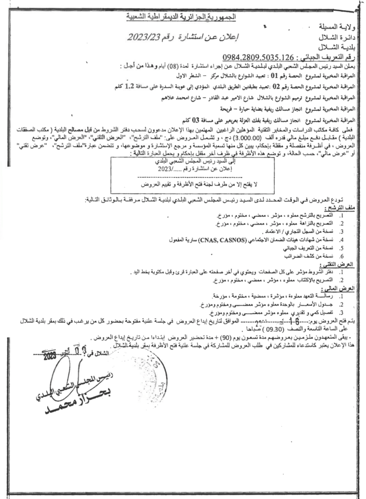 استشارة لمدة 08 أيام وهذا من أجل: المراقبة المخبرية لعدة مشاريع12 أكتوبر، 20230 68 شاركها فيسبوك X مشاركة عبر البريد طباعة