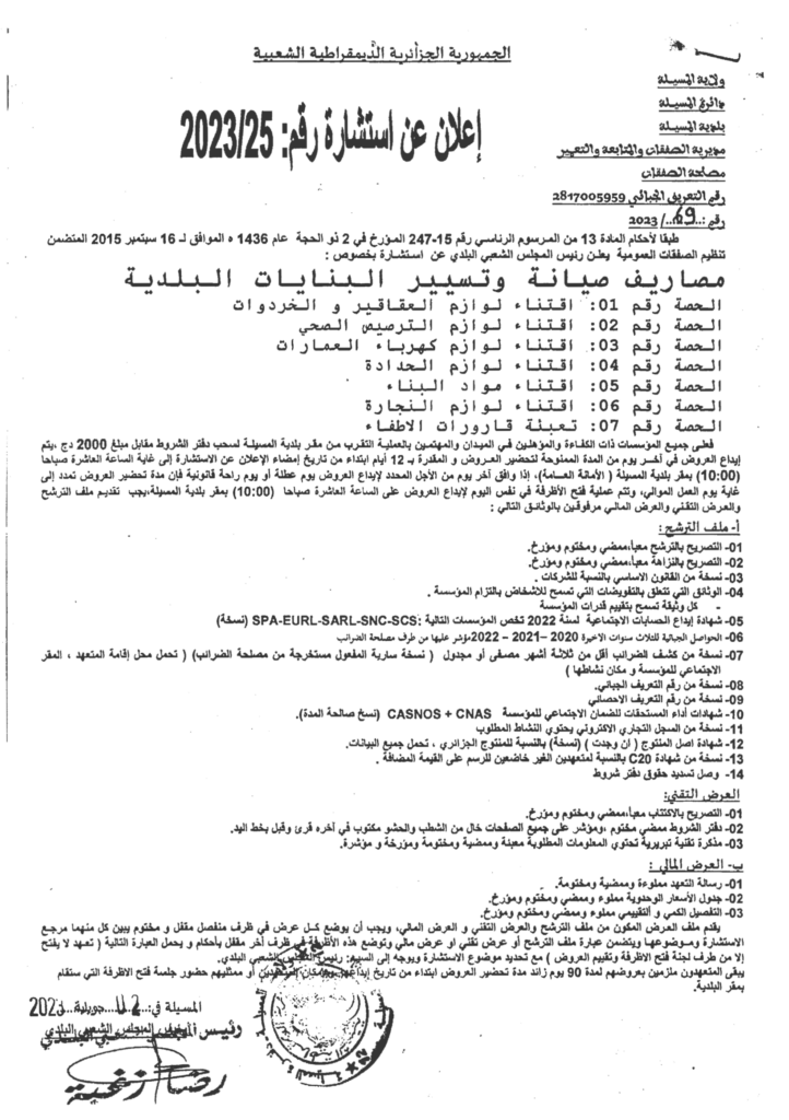 استشارة بخصوص: مصاريف صيانة وتسيير البنايات البلدية11 يوليو، 20230 16 شاركها فيسبوك X مشاركة عبر البريد طباعة