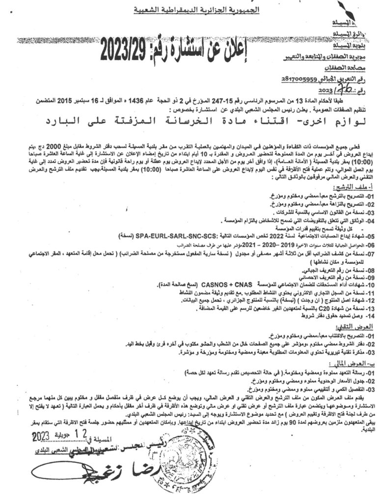 استشارة بخصوص: إقتناء مادة الخرسانة المزفتة على البارد16 يوليو، 20230 21 شاركها فيسبوك X مشاركة عبر البريد طباعة