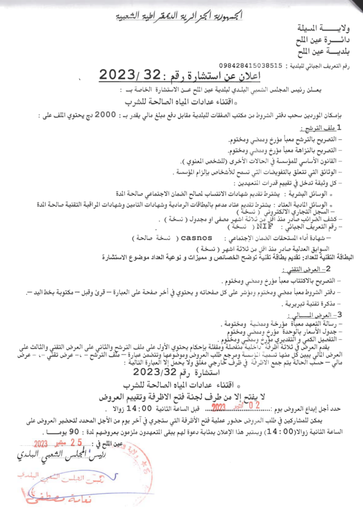 استشارة من أجل: اقتناء عدادات المياه الصالحة للشرب1 أكتوبر، 20230 3 شاركها فيسبوك X مشاركة عبر البريد طباعة
