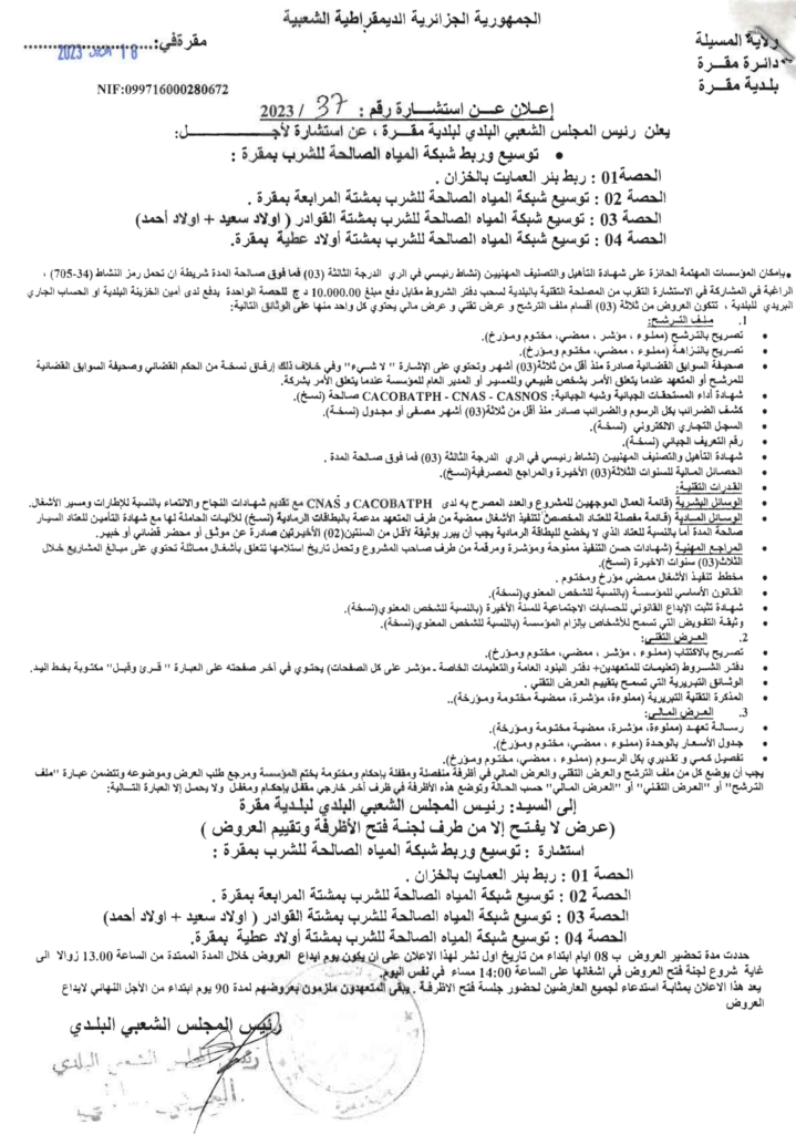 استشارة لـ : توسيع وربط شبكة المياه الصالحة للشرب19 أبريل، 20230 10 شاركها فيسبوك X مشاركة عبر البريد طباعة