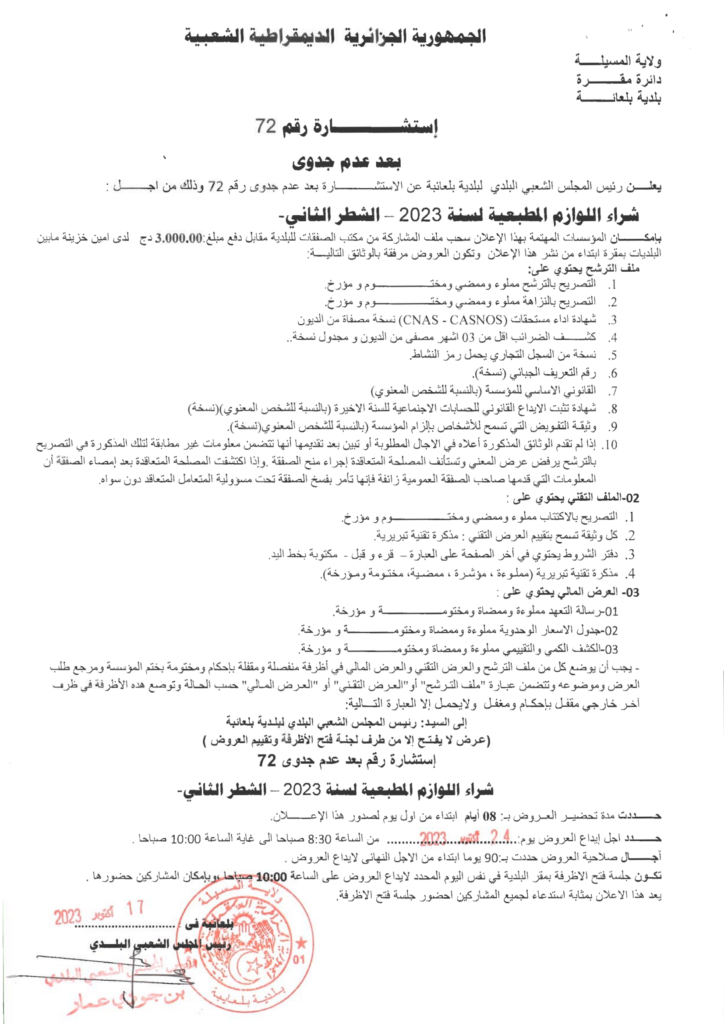استشارة من أجل: شراء اللوازم المطبعية لسنة 2023 الشطر الثاني18 أكتوبر، 20230 4 شاركها فيسبوك X مشاركة عبر البريد طباعة