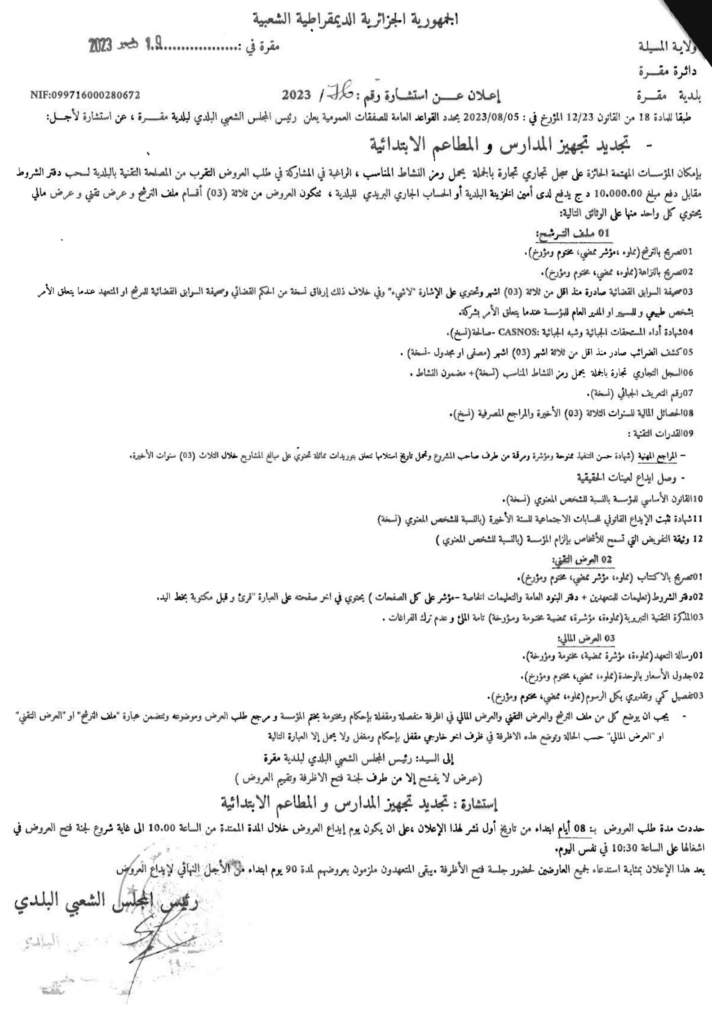 استشارة من أجل: تجديد تجهيز المدارس والمطاعم الابتدائية24 ديسمبر، 20230 68 شاركها فيسبوك X مشاركة عبر البريد طباعة