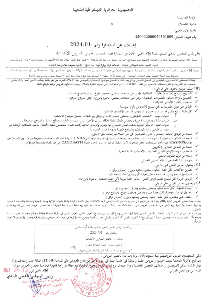 استشارة من أجل: تجهيز المدارس الابتدائية