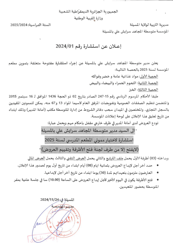 استشارة من أجل: تموين مطعم المؤسسة لسنة 202526 نوفمبر، 20240 22 شاركها فيسبوك X مشاركة عبر البريد طباعة
