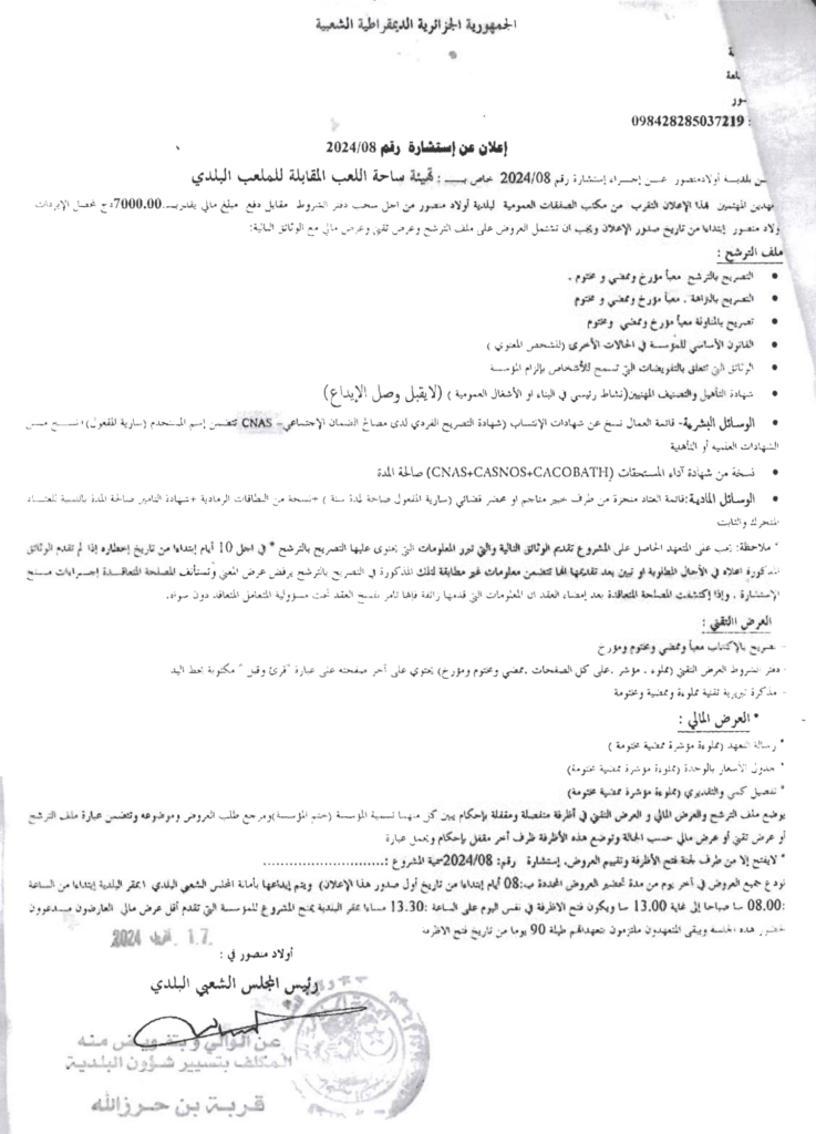 استشارة من أجل: تهيئة ساحة لعب المقابلة للملعب البلدية21 أبريل، 20240 72 شاركها فيسبوك X مشاركة عبر البريد طباعة