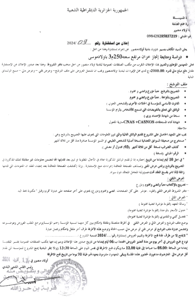 استشارة من أجل: دراسة ومتابعة وانجاز خزان مرتفع سعته 250 م3 بأولاد موسى21 أبريل، 20240 91 شاركها فيسبوك X مشاركة عبر البريد طباعة