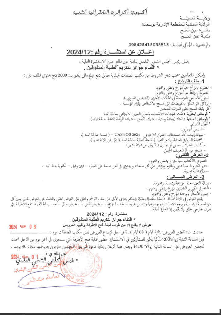 استشارة من أجل: اقتناء جوائز لتكريم الطلبة المتفوقين3 يوليو، 20240 28 شاركها فيسبوك X مشاركة عبر البريد طباعة