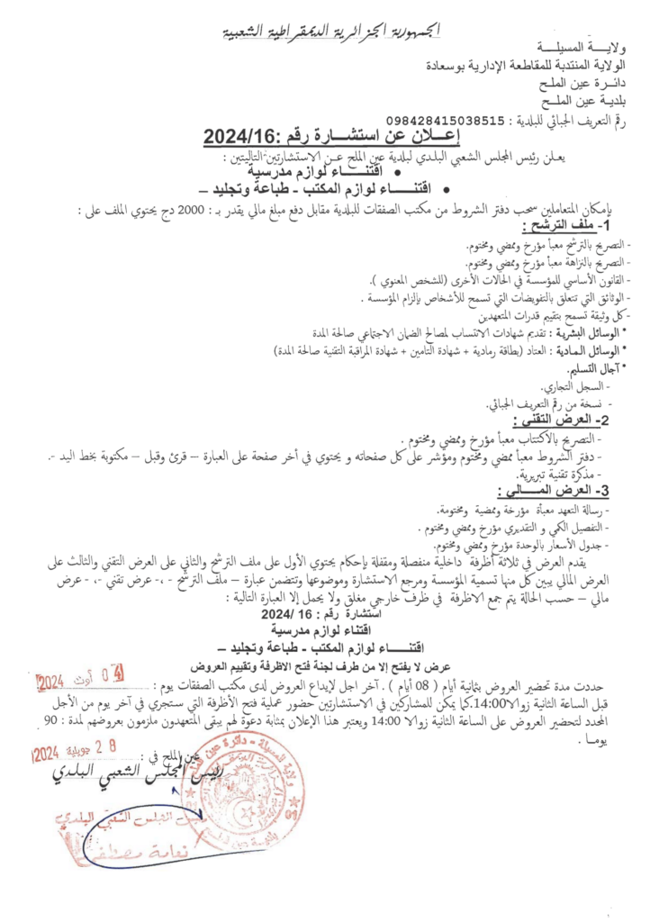 استشارة من أجل: إقتناء لوازم مدرسية – إقتناء لوازم المكتب – طباعة وتجليد28 يوليو، 20240 28 شاركها فيسبوك X مشاركة عبر البريد طباعة