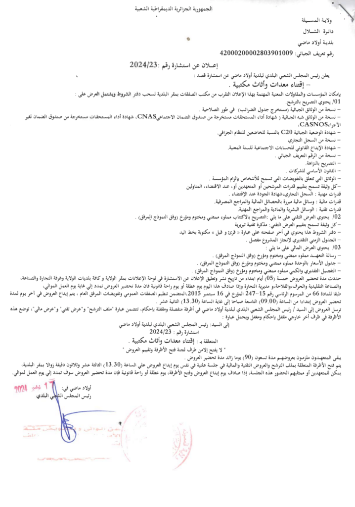 استشارة من أجل: إقتناء معدات وأثاث مكتبية