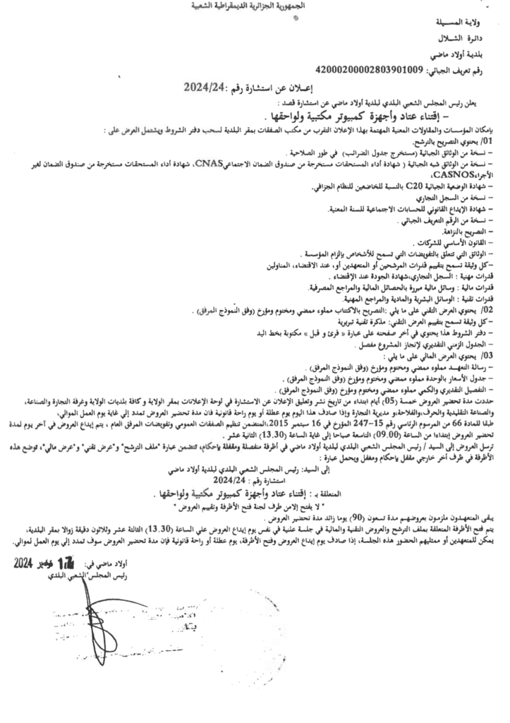 استشارة من أجل: إقتناء عتاد وأجهزة كمبيوتر مكتبية ولواحقها21 نوفمبر، 20240 8 شاركها فيسبوك X مشاركة عبر البريد طباعة