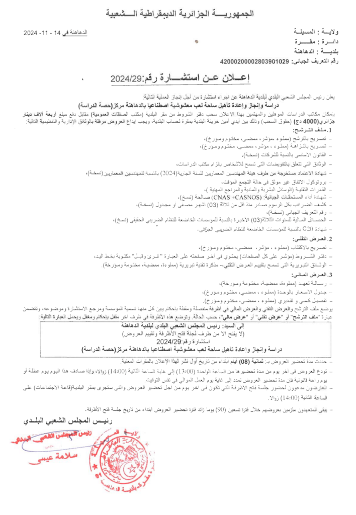 استشارة من أجل: دراسة وإنجاز وإعادة تأهيل ساحة لعب معشوشبة اصطناعيا بالدهاهنة مركز (حصة الدراسة)17 نوفمبر، 20240 5 شاركها فيسبوك X مشاركة عبر البريد طباعة