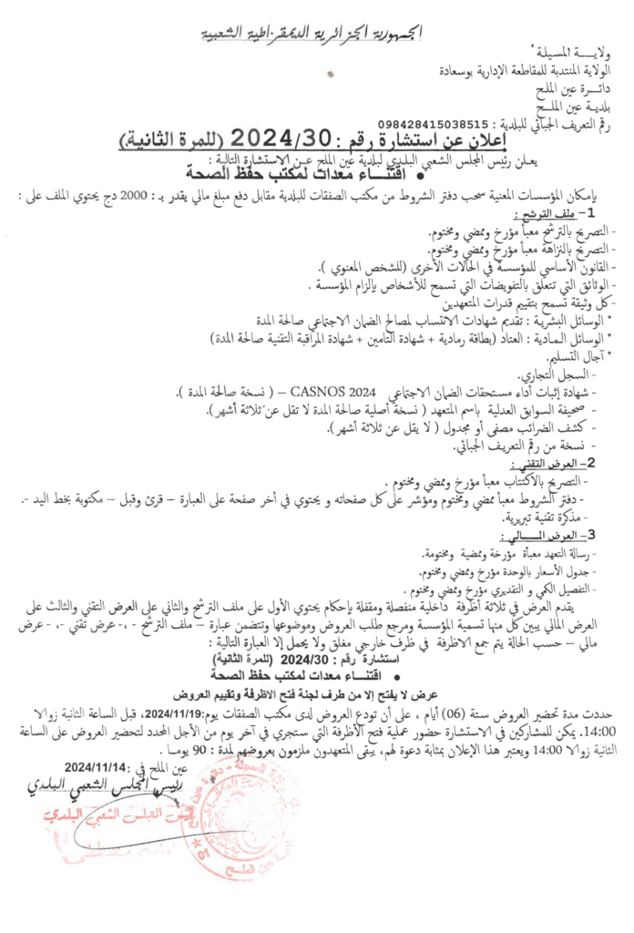 استشارة من أجل: اقتناء معدات لمكتب حفظ الصحة14 نوفمبر، 20240 5 شاركها فيسبوك X مشاركة عبر البريد طباعة