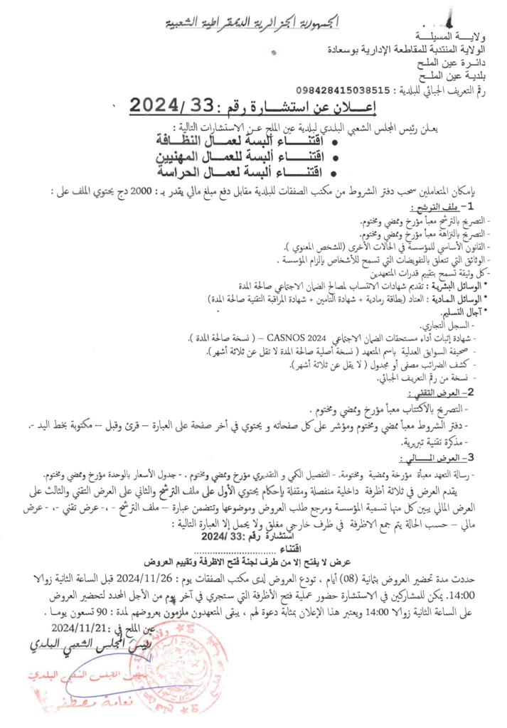 استشارة من أجل: اقتناء ألبسة لعمال النظافة، المهنيين وعمال الحراسة24 نوفمبر، 20240 24 شاركها فيسبوك X مشاركة عبر البريد طباعة