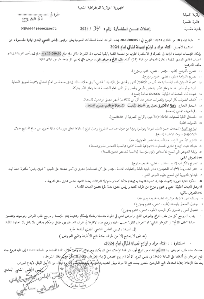 استشارة من أجل: اقتناء مواد ولوازم لصيانة المباني لعام 20245 مايو، 20240 0 شاركها فيسبوك X مشاركة عبر البريد طباعة