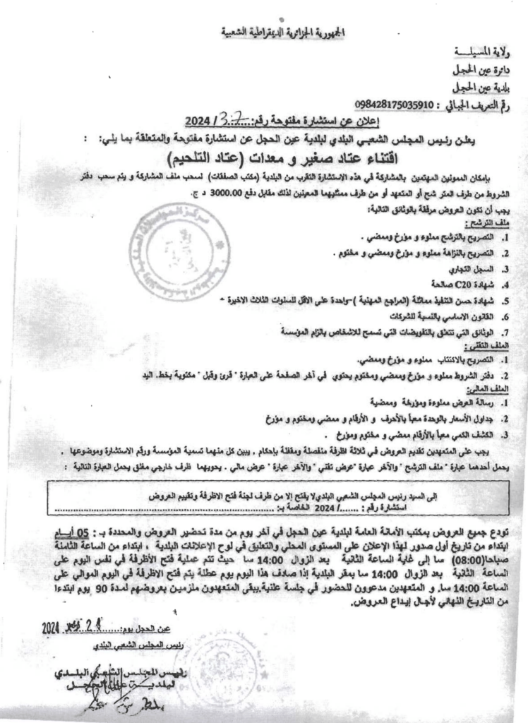 استشارة من أجل: اقتناء عتاد صغير ومعدات (عتاد التلحيم)28 نوفمبر، 20240 0 شاركها فيسبوك X مشاركة عبر البريد طباعة