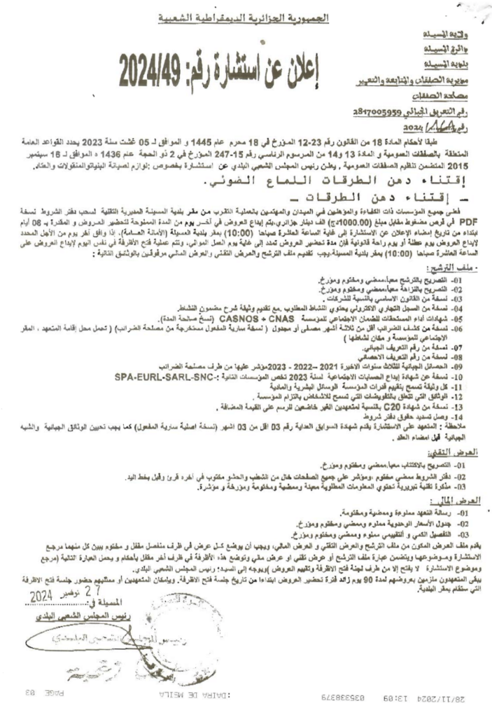 استشارة من اجل: اقتناء دهن الطرقات اللماع الضوئي2 ديسمبر، 20240 3 شاركها فيسبوك X مشاركة عبر البريد طباعة