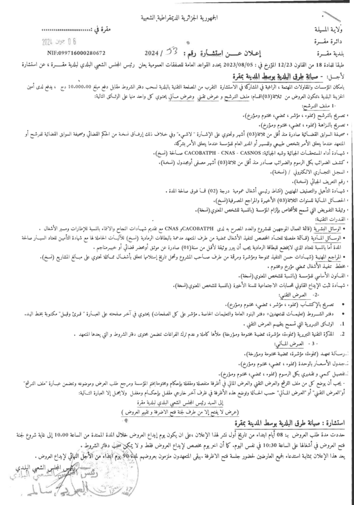 استشارة من أجل: صيانة طرق البلدية بوسط المدينة بمقرة11 يونيو، 20240 36 شاركها فيسبوك X مشاركة عبر البريد طباعة