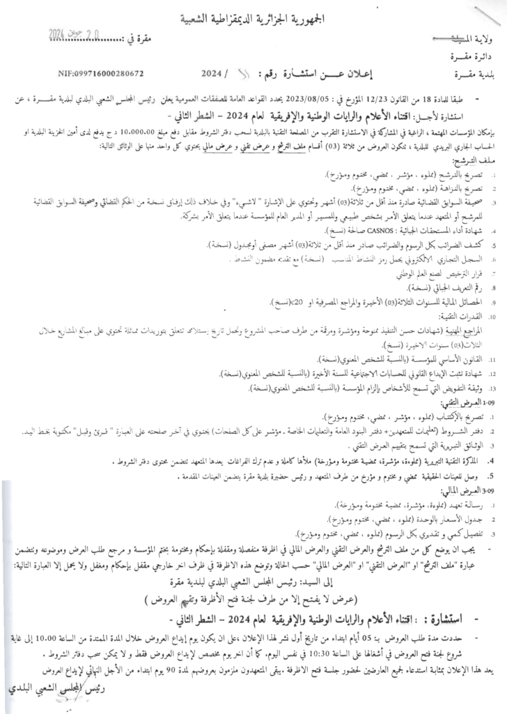 استشارة من أجل: اقتناء الاعلام والرايات الوطنية والافريقية لعام 202424 يونيو، 20240 35 شاركها فيسبوك X مشاركة عبر البريد طباعة