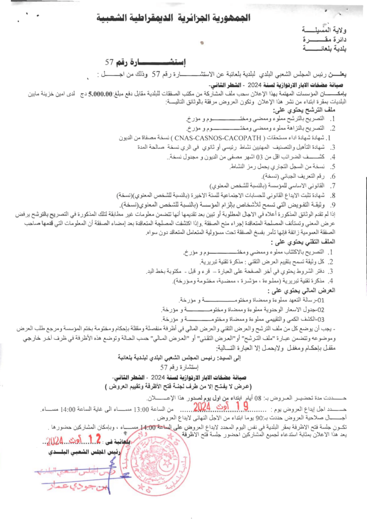 استشارة من أجل: صيانة مضخات الآبار الارتوازية لسنة 2024 الشطر الثاني12 أغسطس، 20240 4 شاركها فيسبوك X مشاركة عبر البريد طباعة