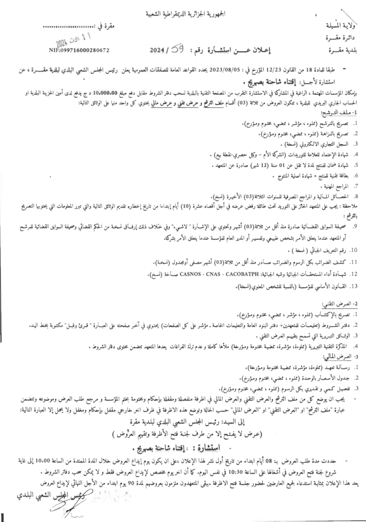 استشارة من أجل: اقتناء شاحنة بصهريج