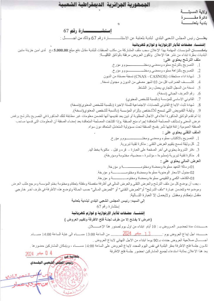 استشارة من أجل: اقتناء مضخات الآبار الارتوازية ولوازم كهربائية4 سبتمبر، 20240 19 شاركها فيسبوك X مشاركة عبر البريد طباعة