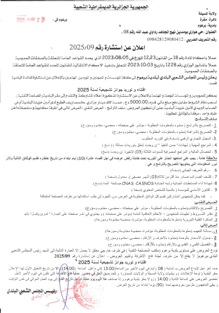 استشارة من أجل: اقتناء وتوريد جوائز تشجيعية لسنة 202526 فبراير، 20250 4 شاركها فيسبوك X مشاركة عبر البريد طباعة