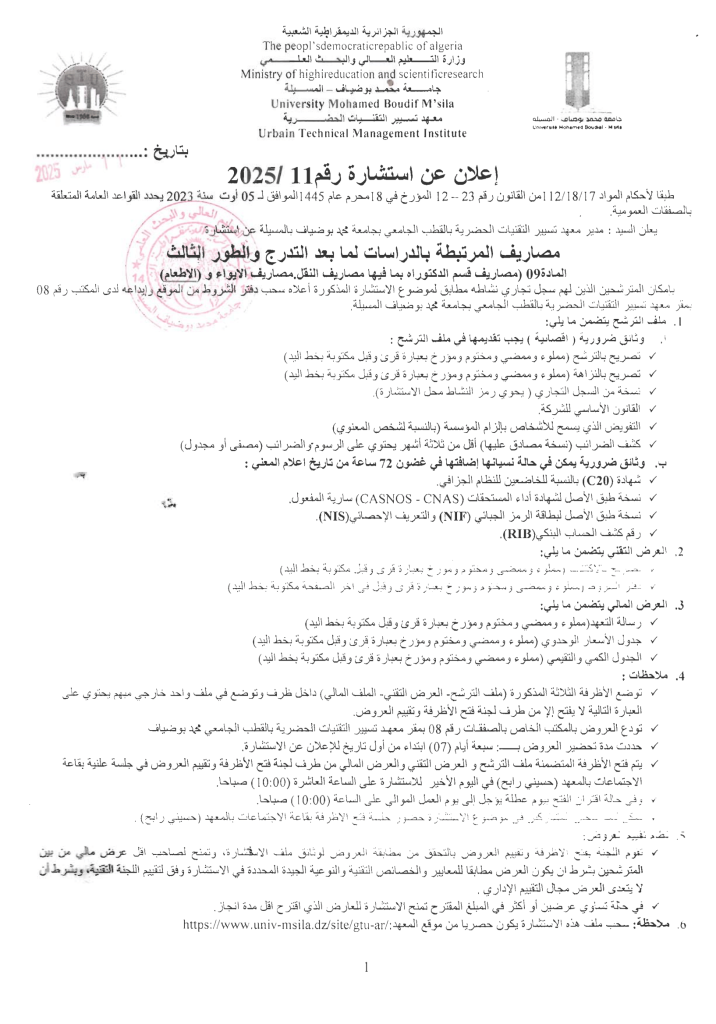 استشارة مصاريف المرتبطة بالدراسات لما بعد التدرج والطور الثالث13 مارس، 20250 1 شاركها فيسبوك X مشاركة عبر البريد طباعة