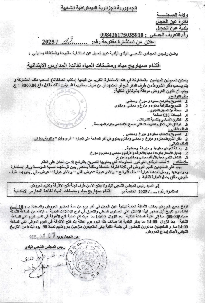 اقتناء صهاريج مياه ومضخات المياه لفائدة المدارس الابتدائية13 أبريل، 20250 30 شاركها فيسبوك X مشاركة عبر البريد طباعة