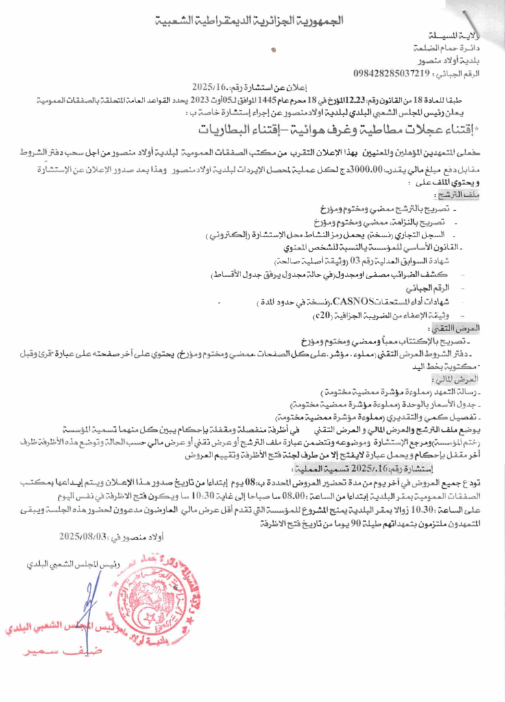 اقتناء عجلات مطاطية وغرف هوائية -اقتناء البطاريات-10 أغسطس، 20250 17 شاركها فيسبوك X مشاركة عبر البريد طباعة