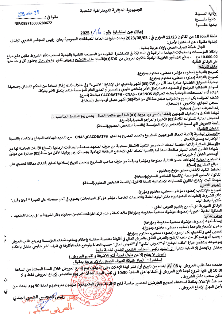 انجاز شبكة الصرف الصحي بأولاد عريبة بمقرة
