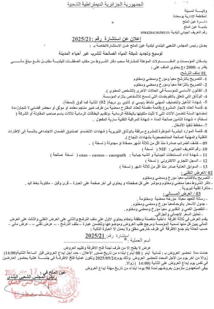 توسيع وتجديد شبكة المياه الصالحة للشرب عبر أحياء المدينة21 سبتمبر، 20250 64 شاركها فيسبوك X مشاركة عبر البريد طباعة