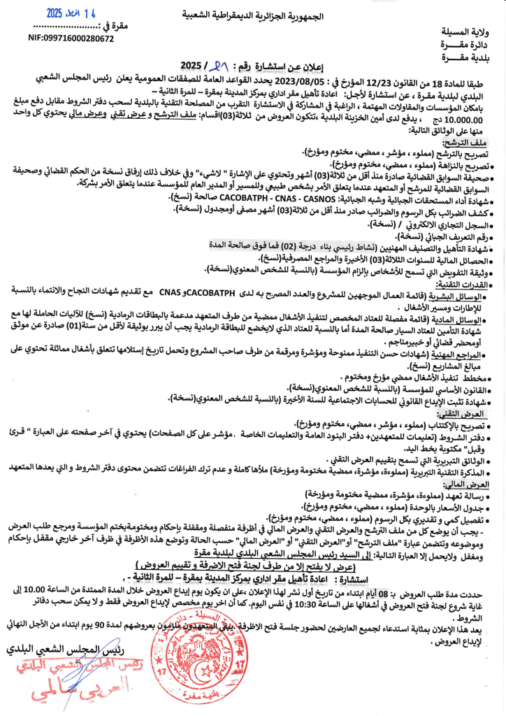 إعادة تأهيل مقر اداري بمركز المدينة بمقرة -للمرة الثانية-15 أبريل، 20250 18 شاركها فيسبوك X مشاركة عبر البريد طباعة