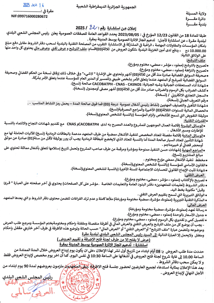 تدعيم انجاز الانارة العمومية بوسط المدينة بمقرة15 أبريل، 20250 18 شاركها فيسبوك X مشاركة عبر البريد طباعة