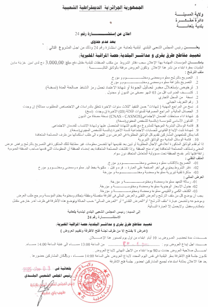 تعبيد مقاطع طرق بقرى ومداشر البلدية (حصة المراقبة المخبرية)9 يونيو، 20250 24 شاركها فيسبوك X مشاركة عبر البريد طباعة