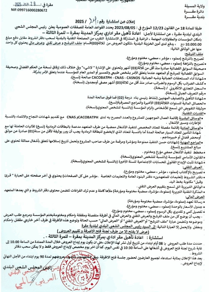 اعادة تأهيل مقر اداري بمركز المدينة بمقرة -للمرة الثانية-30 أبريل، 20250 2 شاركها فيسبوك X مشاركة عبر البريد طباعة