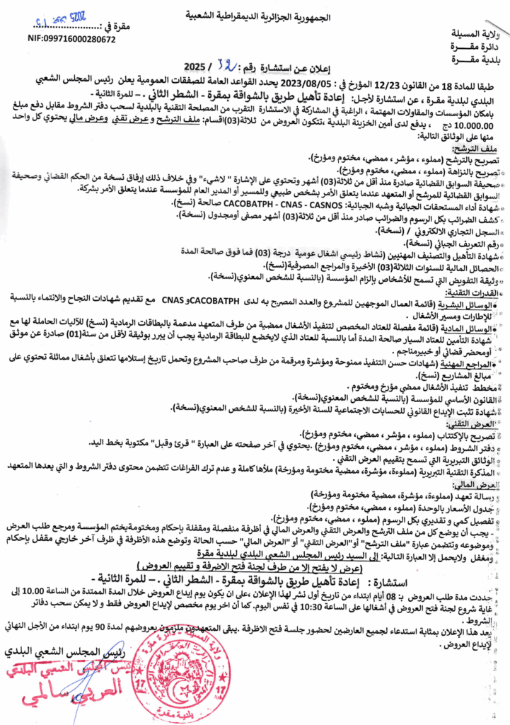 إعادة تأهيل طريق بالشواقة بمقرة -الشطر الثاني- للمرة الثانية15 يونيو، 20250 17 شاركها فيسبوك X مشاركة عبر البريد طباعة