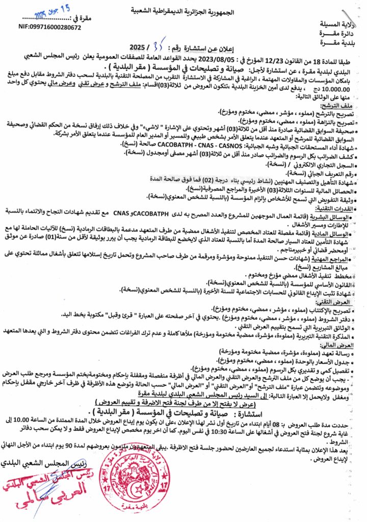 صيانة وتصليحات في المؤسسة (مقر البلدية)
