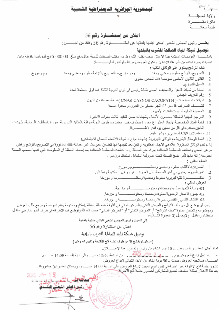 توصيل شبكة المياه الصالحة للشرب بالبلدية