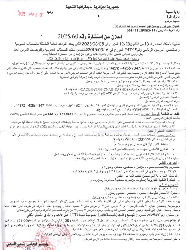 إعلان عن استشارة 2025/60 بلدية برهوم